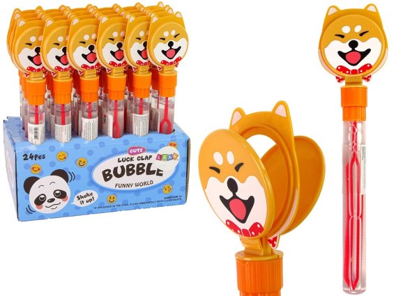 Zabawka przyda się na imprezy okolicznościowe lub wspólne zabawy na podwórku. Pojemnik ma kształt podłużnej buteleczki, a na jej zakończeniu znajduje się piesek. Ma też on funkcję. Poruszając nim, usłyszysz dźwięk kłapania, nie tylko zabawka zapewni efekty wizualne, ale i dźwiękowe.
