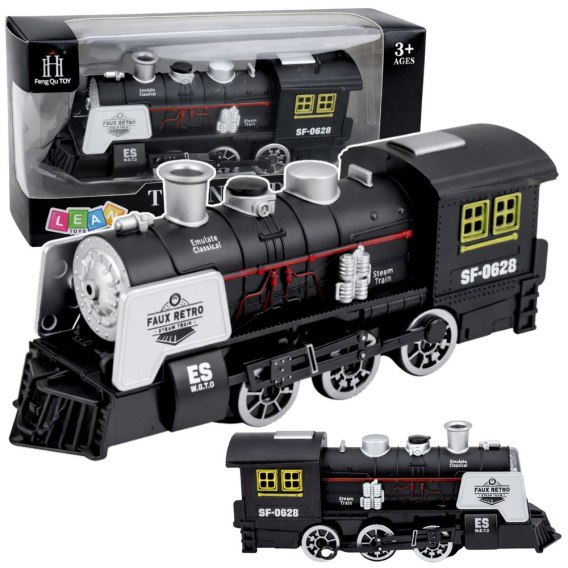 Klasyczna Lokomotywa Czujnik Przeszkód Dym Światła Dźwięki Czarna LEAN Toys
