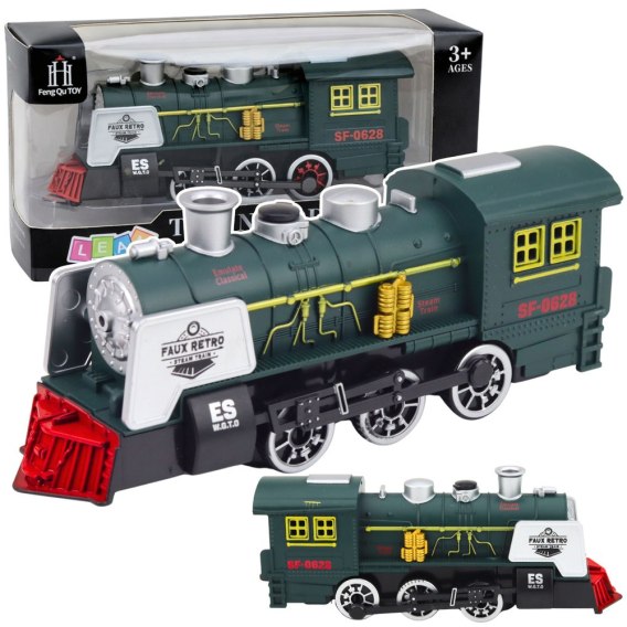 Klasyczna Lokomotywa Czujnik Przeszkód Dym Światła Dźwięki Zielona LEAN Toys