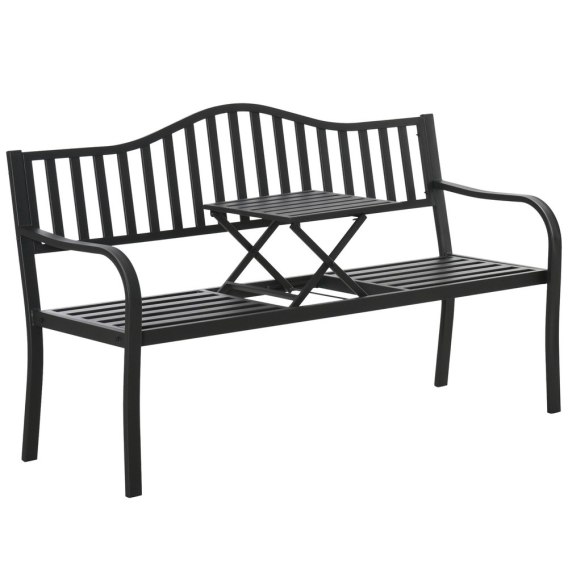 Metalowa ławka ogrodowa ze stolikiem to funkcjonalny i elegancki mebel ogrodowy, który doskonale sprawdzi się w ogrodzie, na tarasie, balkonie lub patio. Ponadczasowy design sprawia, że ławka stanowi wyjątkowy element dekoracyjny przestrzeni zewnętrznej, jednocześnie zapewniając wygodne miejsce do relaksu na świeżym powietrzu. Klasyczna czarna kolorystyka oraz prosta, estetyczna forma sprawiają, że ławka świetnie komponuje się zarówno z nowoczesnymi, jak i tradycyjnymi aranżacjami ogrodowymi.